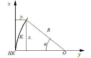где с – угол, равный 1 рад; К – длина криволинейного участка.