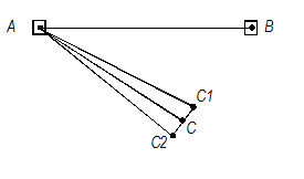 Действия выполняют при двух положениях вертикального круга теодолита, вынесенные углы закрепляют деревянными колышками С1 и С2 (рис. 14). Затем расстояние между ними делится пополам, закрепляется положение точки С, которая и определит окончательное положение угла ВАС.