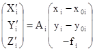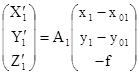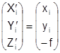 , то есть начало системы координат объекта OXYZ совмещено с точкой S1), f1=f2=f, a x0i=y0i=0.