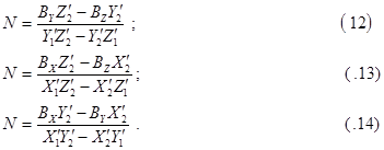 Таким образом, если известны элементы внутреннего и внешнего ориентирования стереопары снимков и измерены на этих снимках координаты соответственных точек x1,y1 и x2,y2, то сначала надо определить по одной из формул ( 12)-( 14) значение скаляра N, а затем по формуле ( 4) вычислить координаты точки местности X,Y,Z.