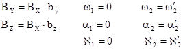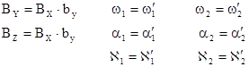 Например, если были определены элементы взаимного ориентирования a1’, À1’, w2’, a2’, À2’ и при этом величины параметров by, bz, w1’ были приняты равными нулю (by=bz=w1’=0), то BY=BZ=0, w1=0, a1=a1’, À1=À1’, w2=w2’, a2=a2’, À2=À2’.