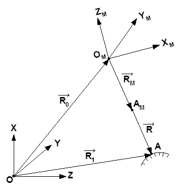 На рис.1: OXYZ - система координат объекта, ОМХМYMZM - система координат фотограмметрической модели , А – точка объекта ,АМ -точка фотограмметрической модели, соответствующая точке А объекта .
