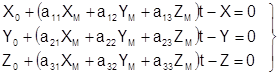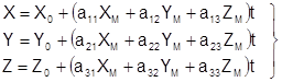 определяют положение начала системы координат модели ОМХМYMZM и точки А местности относительно начала системы координат объекта OXYZ.