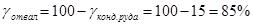 Выход продукта (g) – показатель, характеризующий, какую часть массы исходной руды составляет тот или иной продукт её переработки или обогащения. Выход любого продукта обычно выражают в процентах. Суммарный выход всех продуктов переработки и обогащения должен соответствовать выходу исходной руды, принимаемому за 100%. При разделении исходной руды на два конечных продукта – концентрат с выходом gк и хвосты с выходом gхв – это условие записывается в виде равенства, выражающего баланс выхода продуктов обогащения: