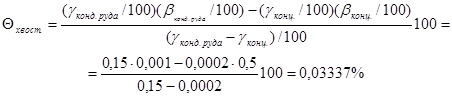 2) для кондиционной руды, идущей на обогащение b=0,1%,
