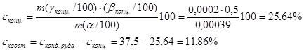 где a и b - содержание олова (CSn) в исходной горной массе и обогащённом продукте соответственно;