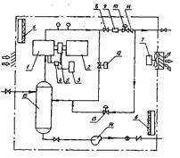Включение – отключение компрессора, изменение оборотов двигателя компрессора и, соответственно, его производительности, открытие – закрытие клапанов осуществляется автоматически в зависимости от изменения давления на приеме компрессора. Давление на входе в компрессор изменяется с изменением давления в резервуарах.