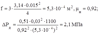 где f, mн - площадь сечения и коэффициент расхода промывочных отверстий долота.