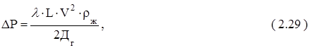 Т.к. V > Vкр = 1,16 м/с, то режим турбулентный и потери давления в КП против ЛБТII рассчитываются по формуле (2.29)