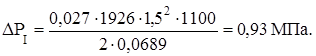 Т.к. V < Vкр = 1,18 м/с, то режим турбулентный и потери давления в КП против турбобура рассчитывается по формуле (2.29)
