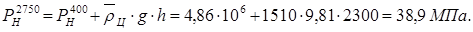 где ρц = 2920 кг/м3 – плотность цементного раствора;