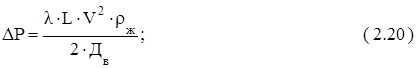 Т.к. Re < 50000, то режим турбулентный, и коэффициент гидравлических сопротивлений l определяется по формуле (2.22)