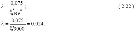 Т.к. Re* < 50000, то режим турбулентный, и коэффициент гидравлических сопротивлений