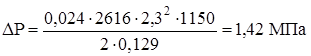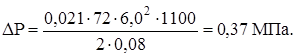 a = 13,2×105 Па×с2/м3×кг; DР = 13,2×105×0,032×1100 = 1,31 МПа