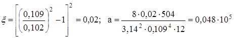 Площадь проходного сечения S = p×Дв2 /4= 3,14×0,1092 /4= 0,0093 м2