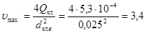 Максимальная скорость движения смеси в седле всасывающего клапана и число Рейнольдса: