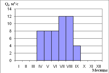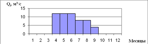 9) санитарные попуски (Qс) принимаются постоянными в течение года и равным минимальному расходу гидрографа 2 м3/сек.