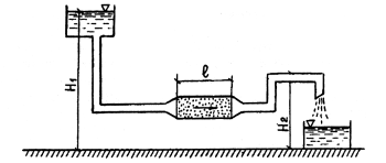 Для хорошо фильтрующих грунтов (песков и супесей) коэффициент фильтрации определяют с помощью прибора (рис. 5.16), состоящего из трубы длиной l, заполненной грунтом, и двух трубок — подводящей и отводящей воду. При разности напоров Н2 - Н1 вода будет фильтроваться под действием градиента (J). Определив объем воды V, профильтровавшейся за время t, можно по формуле