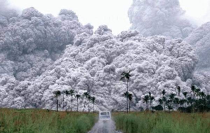 Пелейский вид назван по имени вулкана Мон-Пеле на острове Мартиника (Малые Антильские острова). При извержениях вулканов этого вида пепло-газовая туча не поднимается вверх, а скатывается по склонам на окружающую низменность, сжигая и разрушая всё на пути (рис. 3). Так был сожжен в 1902году приморский город Сен-Пьер с тридцатитысячным населением.