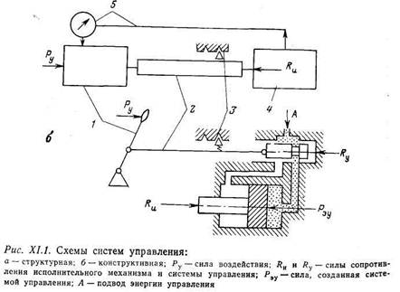 Для приведения в действие органов управления используются различные виды энергии: в системах ручного механического управления —сила оператора; в пневматических, гидравлических и электрических системах —энергия сжатого воздуха, жидкости или электричества.