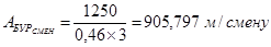 Находим производительность рудника по бурению шпуров за смену, м/смену: