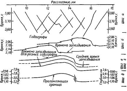 Рис. 4. Интерпретация встречных профилей по методу времен запаздывания.