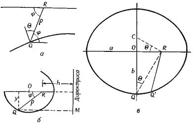 Мы получили уравнение эллипса в полярной системе координат. Эллипс —это геометрическое место таких точек Q (рис. 5, б),
