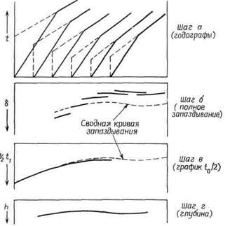 г) Метод Виробека. Для иллюстрации метода Виробека обратимся к верхней части рис. 6, где показан ряд одиночных годографов. Последовательные шаги интерпретации таковы: