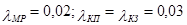 - соответственно, коэффициенты гидравлических сопротивлений в бурильных трубах, кольцевом пространстве и колонковом зазоре