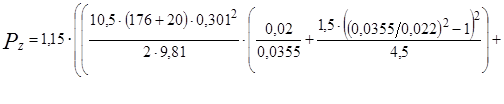 - соответственно, удельный вес промывочной жидкости в бурильных трубах и в затрубном пространстве, кН/м3. Принимаем равной 1,05 г/см3=10,5 кН/м3;