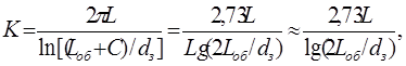 Определим коэффициент зонда аппаратуры К1А-723М, у которой L=0,18м, Lобщ = 3,2 м и d3 = 0,07 м. Из формулы (2) получаем
