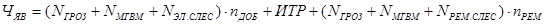 где NГРОЗ – общее число горнорабочих очистного забоя; NМГВМ – машинист и помощник машиниста комбайна; NЭЛ.СЛЕС. – число дежурных электрослесарей; NРЕМ.СЛЕС. – число ремонтных слесарей (работают только в ремонтную смену)