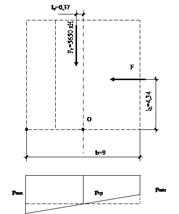 Кинематически возможнойсхемой потери устойчивости является опрокидывание сооружения относительно передней грани фундамента.