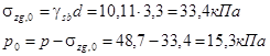 Дополнительное вертикальное давление ро непосредственно под подошвой фундамента определяется как разность между контактным давлением р и вертикальным напряжением σzg,o от собственного веса грунта на уровне отметки FL:
