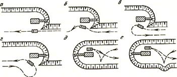 а,6- сквозной подъезд; б, г - подъезд с петлевым разворотом; д, е - подъезд с тупиковым разворотом