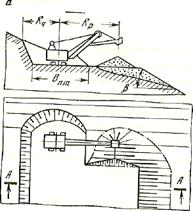 а - мехлопатой на косогоре; б - драглайном на равнинной местности