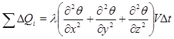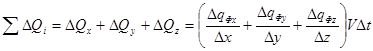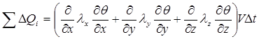 - тепловой поток по i-му координатному направлению, обусловленный физической теплопроводностью, V – объем воды,