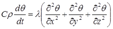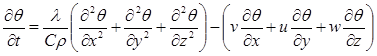 где С – удельная теплоемкость, ρ – плотность воды. Раскрытие полной производной dq/dt преобразует уравнение (3.5) к уравнению теплопроводности (уравнению Фурье-Кирхгофа)