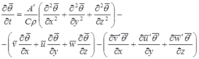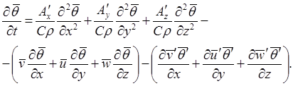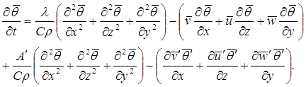 В водных потоках изменение теплового состояния в основном зависит от турбулентного теплопереноса. Суммарный эффект влияния физической теплопроводности и турбулентного теплопереноса с учетом осреднения всех членов уравнения (3.6) дает (Алексеевский, 2006):