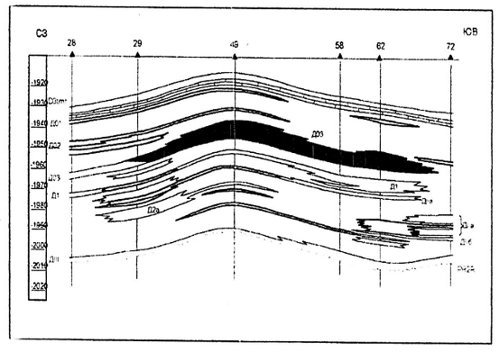 Региональной покрышкой комплекса является плотная пачка глинисто-карбонатных пород тиманского и саргаевского горизонтов, развитая выше первого проницаемого пласта Д0, а в зонах, где тиманский песчаный пласт отсутствует, выше пласта ДI Мощность покрышки изменяется от 5 до 50-60 м; в Казанско-Кажимском авлакогене мощность ее увеличена до 400 и более метров.