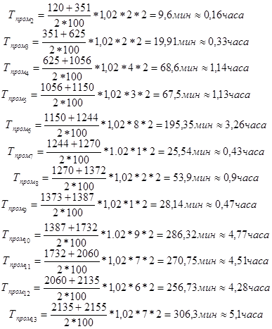 Тпром.общ. = 0,02+0,16+0,33+ = 27,98 часа.