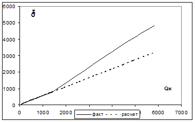 Рис. 20. Зависимость Qн от Qж для скважины №1