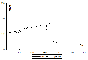 Рис. 22. Зависимость Qж/Qн от Qв для скважины №1