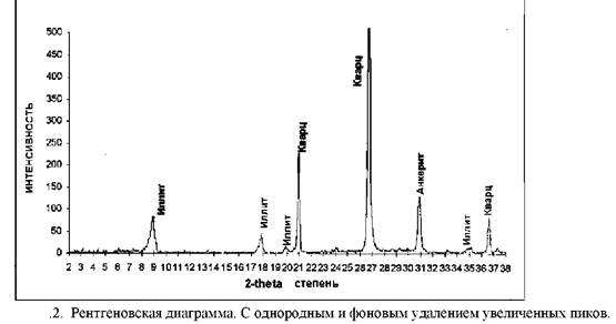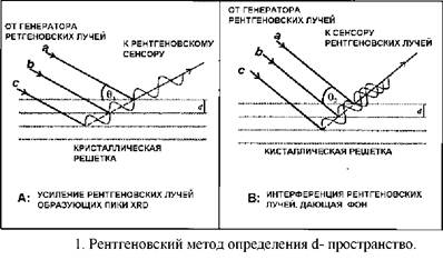 Рентгеновский анализ определяет пространство (d-пространство, измеряемое в Ангстремах) между плоскостями решётки в минералах от угла (28), при котором рентгеновские лучи с известной длиной волны диффрагируются минералом (рис.1).