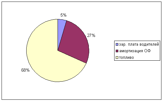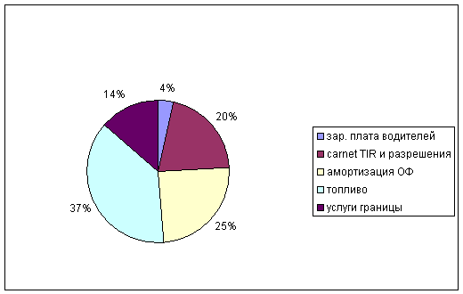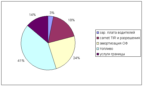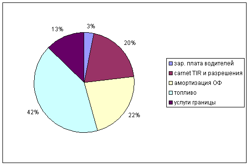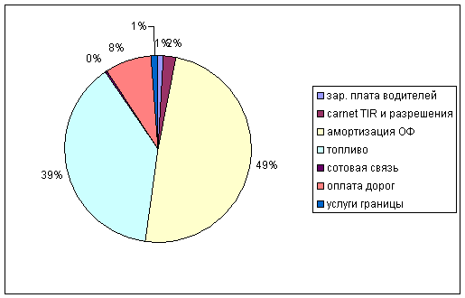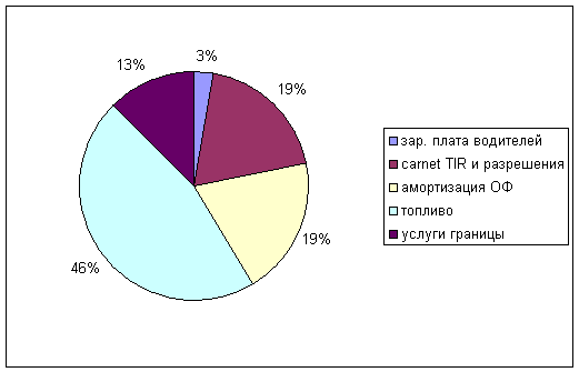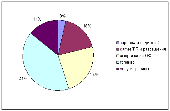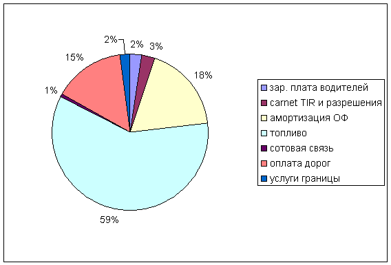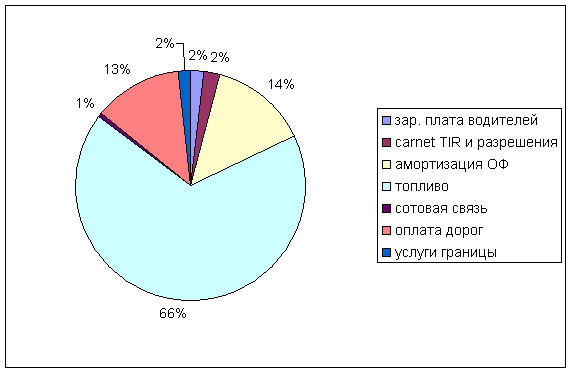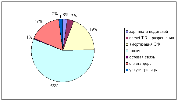 Как видно из приведенных выше диаграмм 4-6 затраты на топливо составляют почти 60% от общего уровня затрат по направлениям “Европа” и ”Россия”. Это объясняется большой стоимостью топлива за приделами России для направления “Европа” и меньшим количеством статей затрат на производство для направления “Россия”. Относительно Финляндии можно сказать, что здесь процент затрат на горючее значительно меньше так как перевозка осуществляется целиком на российском топливе.