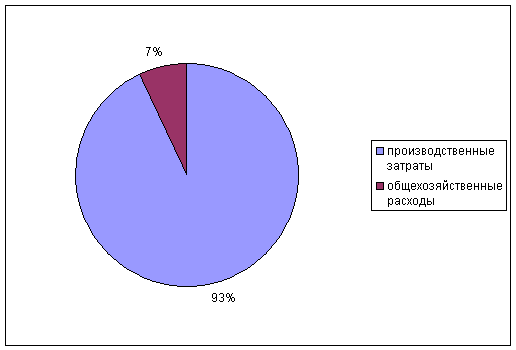 Рис. 21. Доля производственных и общехозяйственных расходов в общем объеме затрат за июль 2004г.