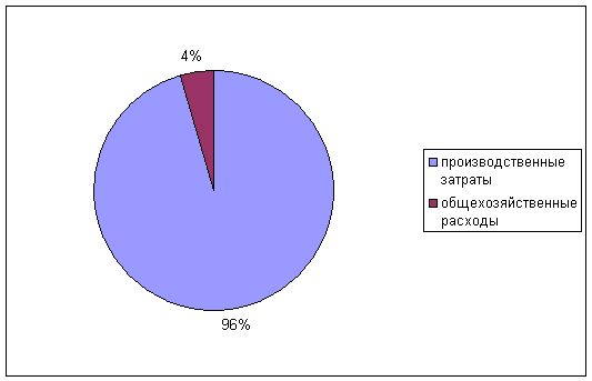 Рис. 20. Доля производственных и общехозяйственных расходов в общем объеме затрат за апрель 2004г.