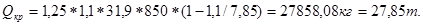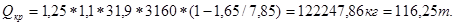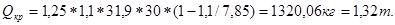 k – коэффициент завышения веса БТ (k = 1,25).