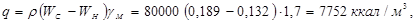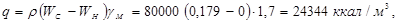 где ρ - удельная теплота плавления льда, равная 80 000 ккал/т; WC, WH –соответственно суммарная влажность и весовое содержание незамершей воды, доли единицы; γМ – объемный вес скелета мерзлого грунта , т/м3.