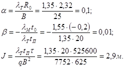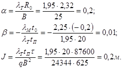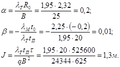 где λТ, λМ – коэффициенты теплопроводности соответственно талого и мерзлого грунта, ккал/м∙ч∙град; R0 – термическое сопротивление пола здания, м2∙ч∙град/ккал; B – ширина здания, м; t0 ,tП – температуры соответственно грунта на глубине 10 м и воздуха внутри помещения, ºС; τ – время от начала эксплуатации здания или сооружения, ч; q – теплота таяния мерзлого грунта, ккал/м3;